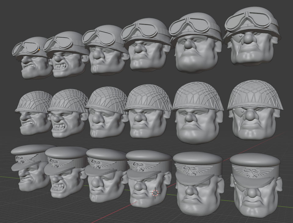 44 head options (11 faces provided with 4 hat or no hat options) 3 Melee weapon options (chainsword, Maul, Hammer, Powerfist)