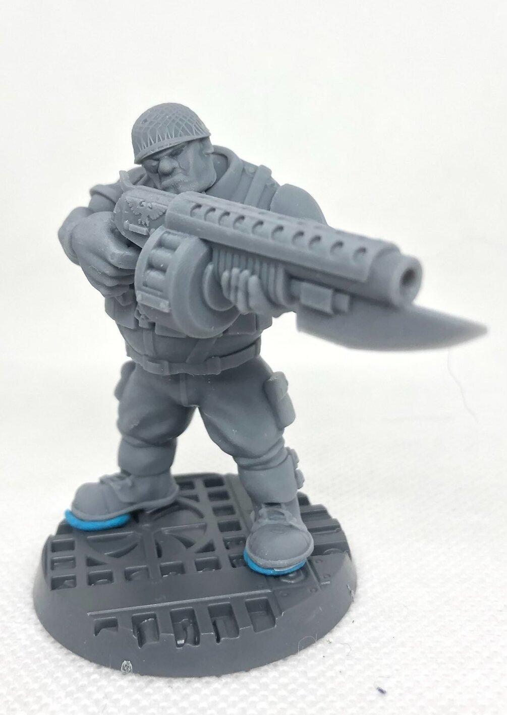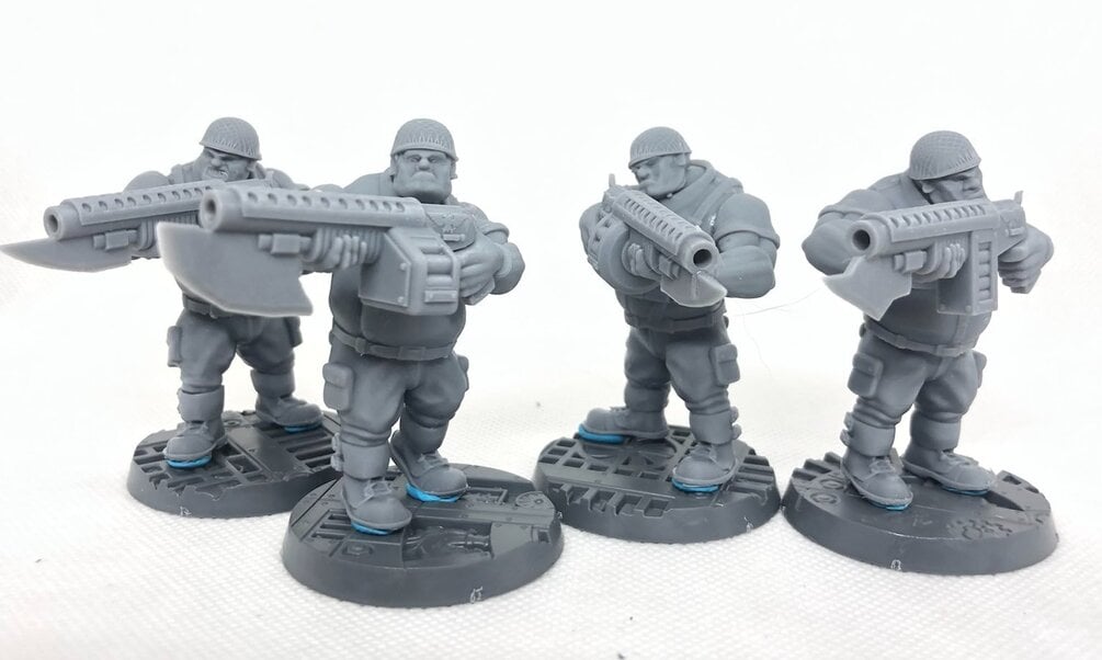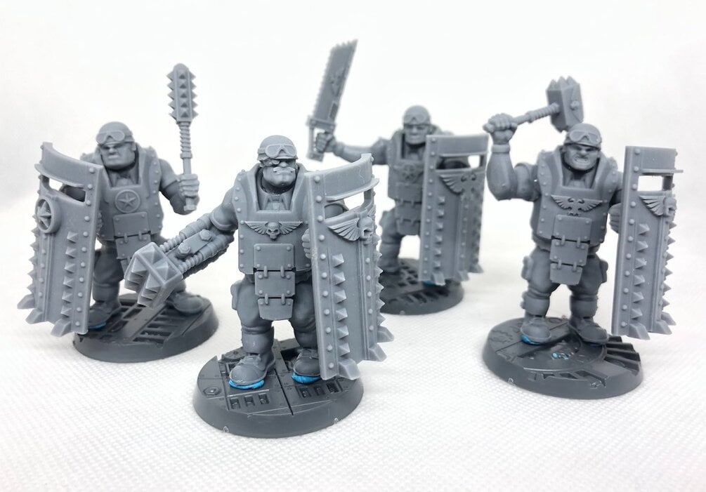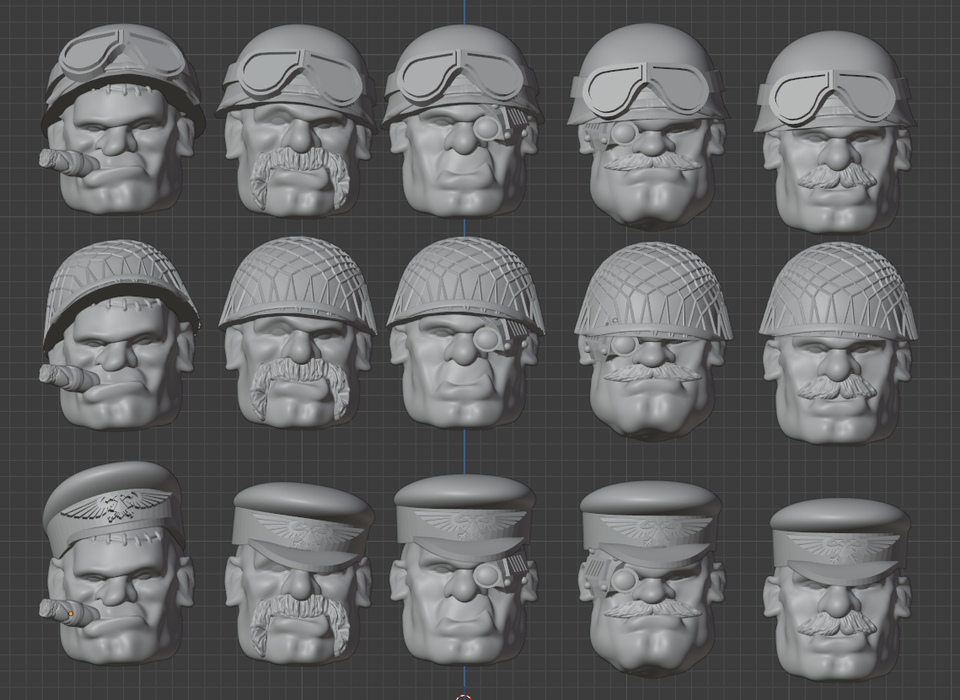 44 head options (11 faces provided with 4 hat or no hat options) 3 Melee weapon options (chainsword, Maul, Hammer, Powerfist)